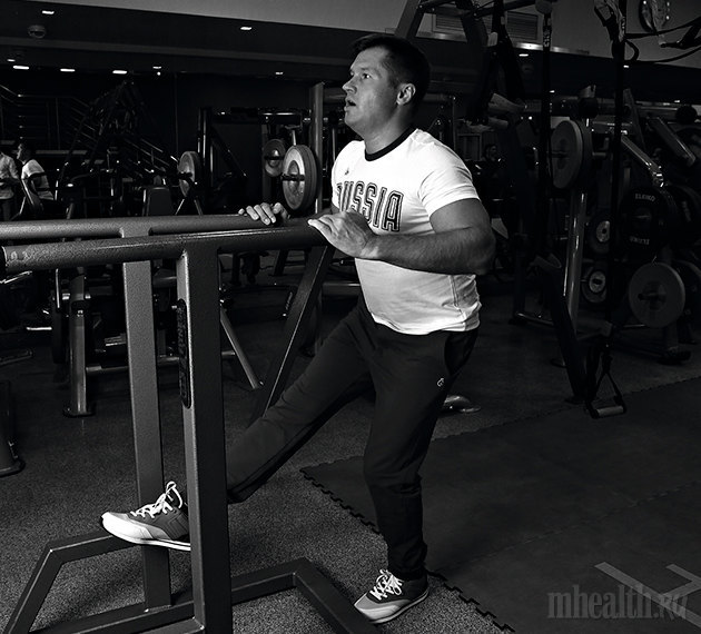 I do them by the bars so that I can hold with my arm for balance. I squat on one leg first, then on another. I believe that if a person does 3 rounds of 10 squats on each leg and stood in a plank in the morning, it’s a decent workout already. By the way, you can do a circle leg workout in the morning: walk on a foam mat for a minute to warm up your ankles and Achilles tendons, do squats, jump in one place, do three series of long jumps (each series going on for 25 meters) and run with weights – for example, pulling a tire strapped to your belt.