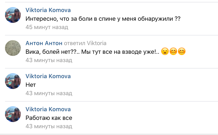 When another user asked whether she has any back pain, Komova said: “No. I’m working, like everyone else”.
